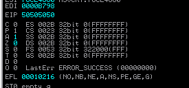 EIP가 50505050로 덮어씌어진걸 볼 수 있습니다. 대충 35000~36000번 즈음이 EIP에 덮어 씌어지는거 같습니다. (A 21000개 B1000개 ~ )