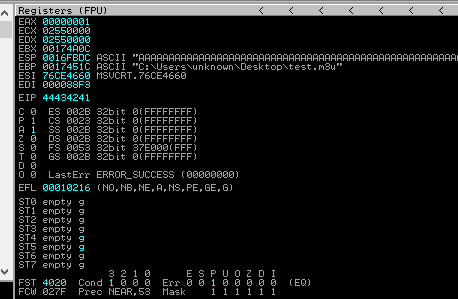 ABCD가 리틀-엔디안으로 EIP에 들어가있는 것을 볼 수 있습니다.