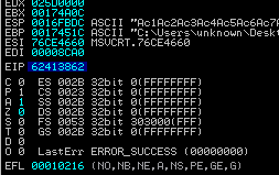 프리징이 걸리는 시점을 보니 EIP가 41414141로 되어있는 것을 볼 수 있습니다. 넣어준 \x41이 제대로 EIP를 덮어씌웠네요.