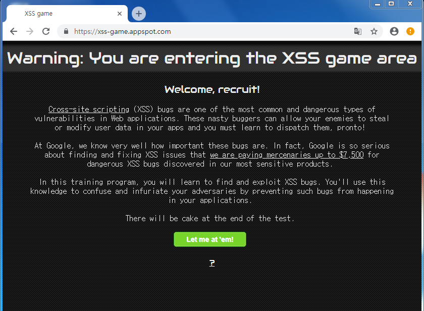 바로 XSS에 대해 재밌게 실습해볼수 있는 게임이 있더군요!