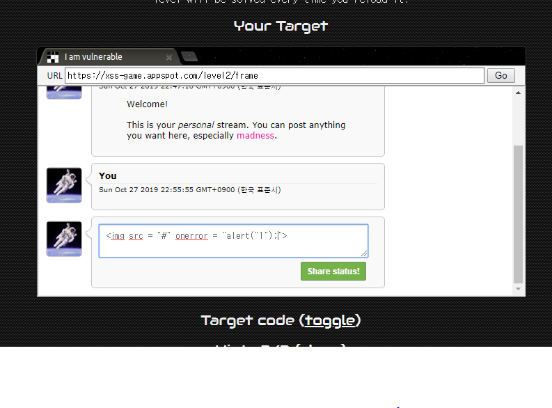 | [XSS-game] Level 3 풀이! (0) | 2019.10.27 |