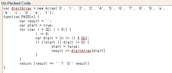소스 보니까 누가봐도 eval함수에 JS난독화