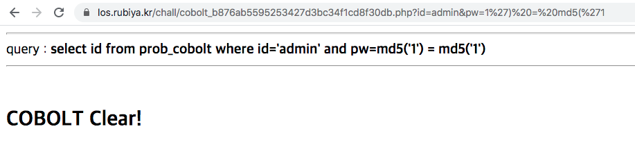 이번에는 id는 admin이어야 된다는 조건이랑 pw를 md5해싱한 값으로 비교해야합니다.