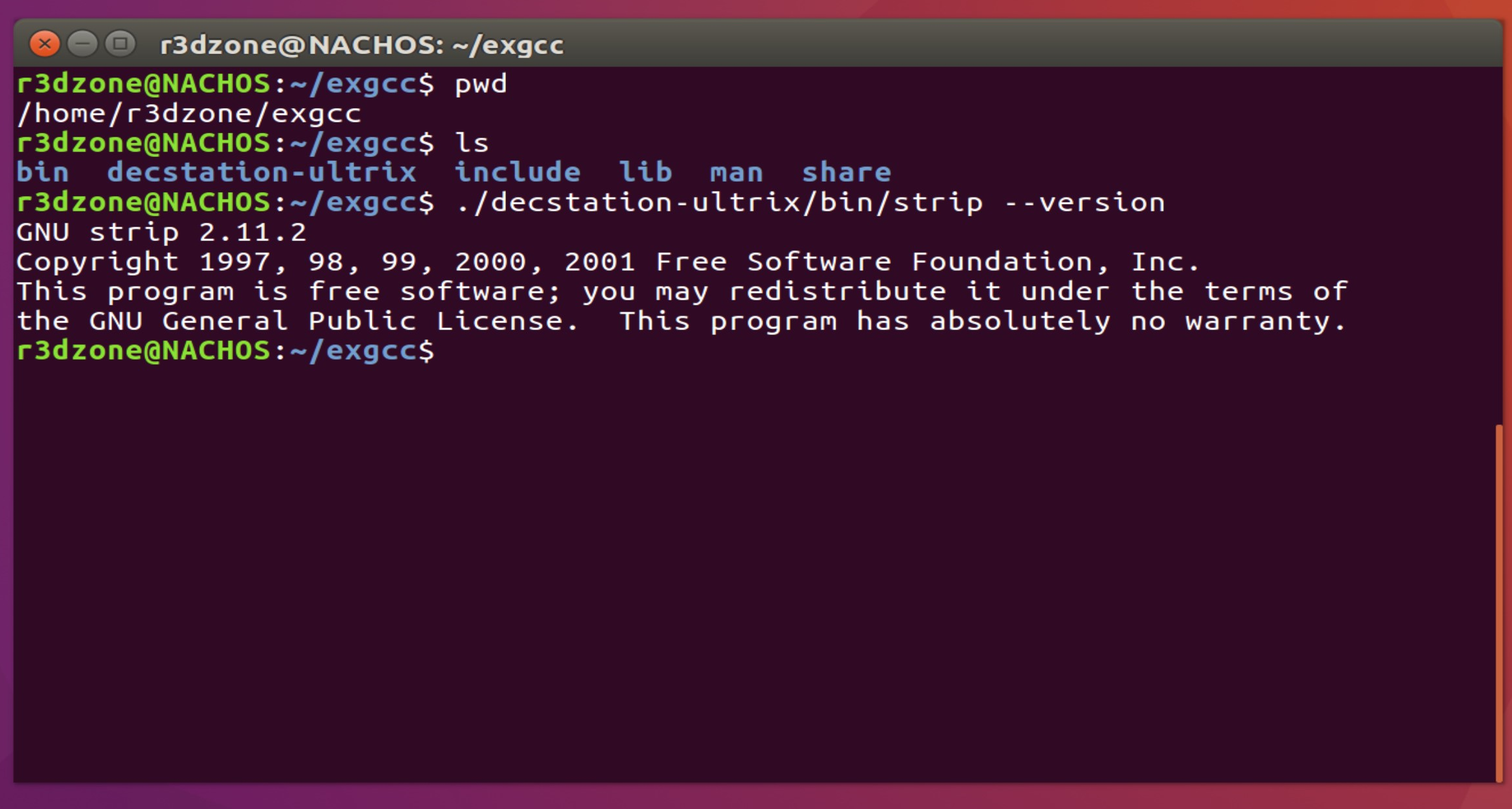 이후 나와보면 아까 환경변수에 지정해준 디렉토리가 생성되있는 것을 확인할 수 있다. 나는 버전 확인을 위해 binutils에 포함되어있는 strip바이너리를 이용하여 버전을 확인해 주었다.