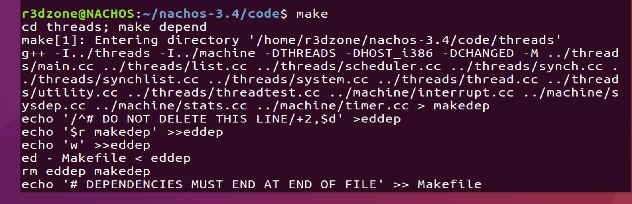 makefile이 있는 code 디렉토리에서 make를 실행해주면 nachos를 컴파일 할 수 있습니다.