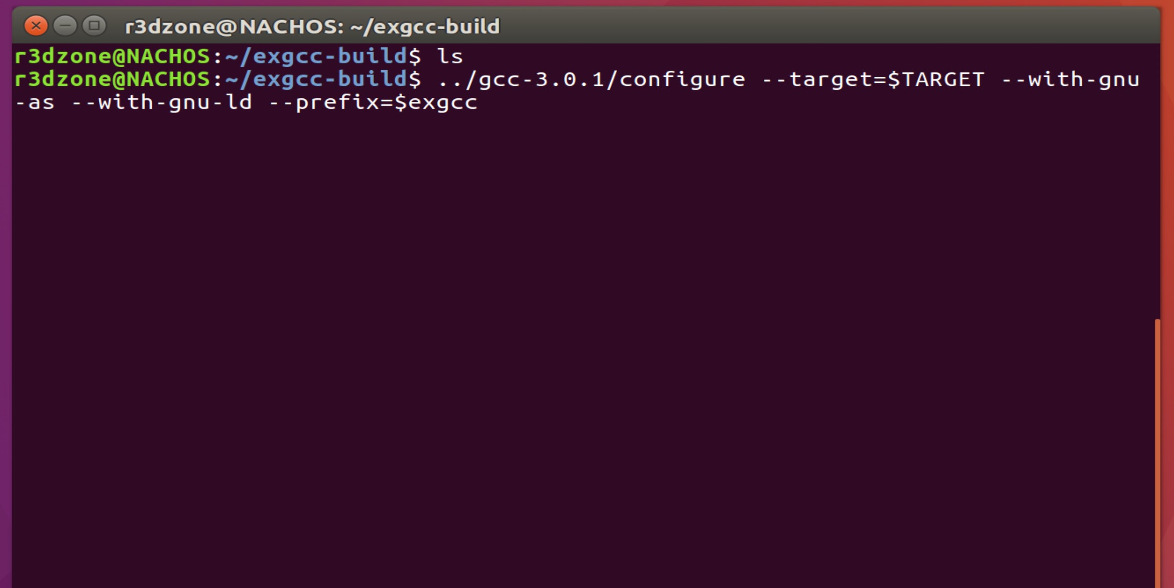 생성해준 exgcc-build 폴더에 들어간 뒤 소스코드가있는 디렉토리의 configure파일을 실행시켜준다.