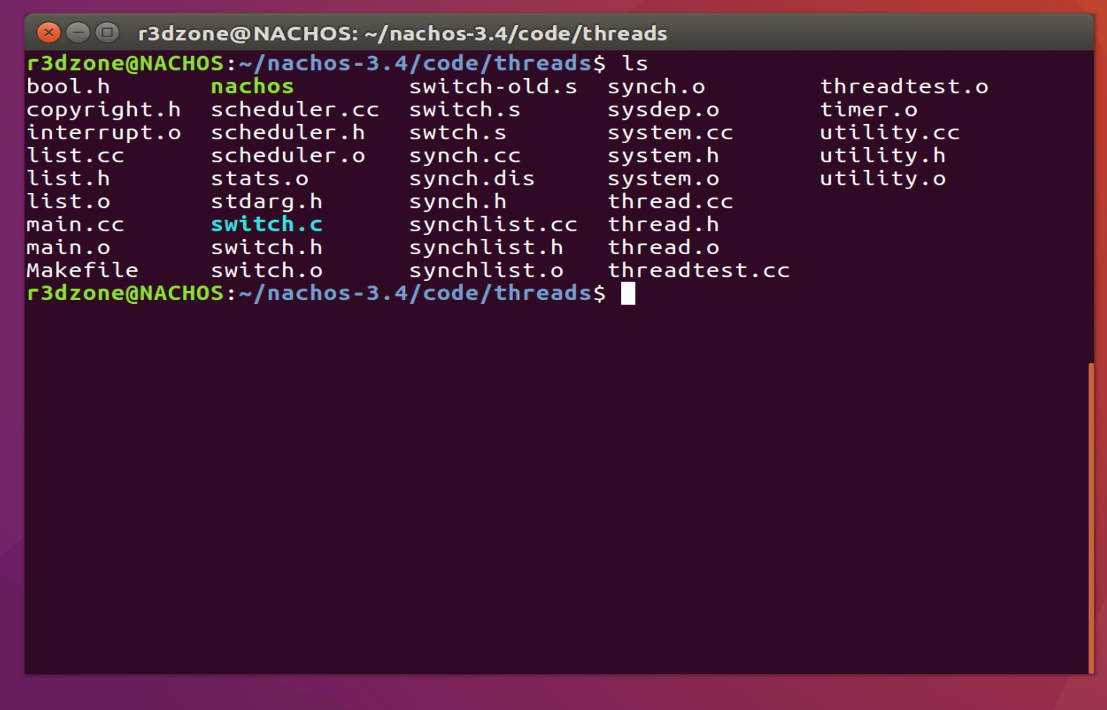 threads 디렉토리에 가보면 나초스가 컴파일 완료되어있는 것을 확인할 수 있습니다!