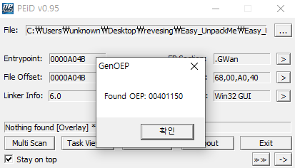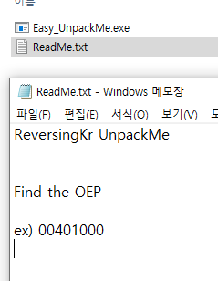 패킹전에 프로그램이 시작되던 위치를 찾으라는 소리입니다.