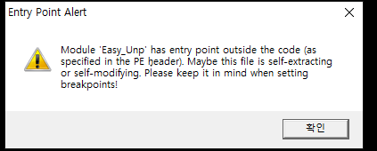 허허 정말 친절한 우리 이뮤니티디버거는 EP가 코드영역 밖에 있다고 BP거는걸 주의하라네요