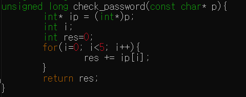 인자로 준 argv[1]을 시작주소로 4바이트씩 값을 보아서 총 5개의 합을 반환해줍니다.