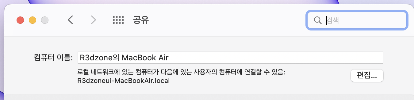 나름 로컬라이징 해준건지 "이름의 제품명"으로 들어가 굉장히 길고 그지같은 R3dzoneui-MacBookAir라는 거추장스러운 컴퓨터명이