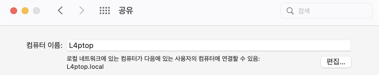 애플로고 -> 시스템 환경설정 -> 공유 -> 편집