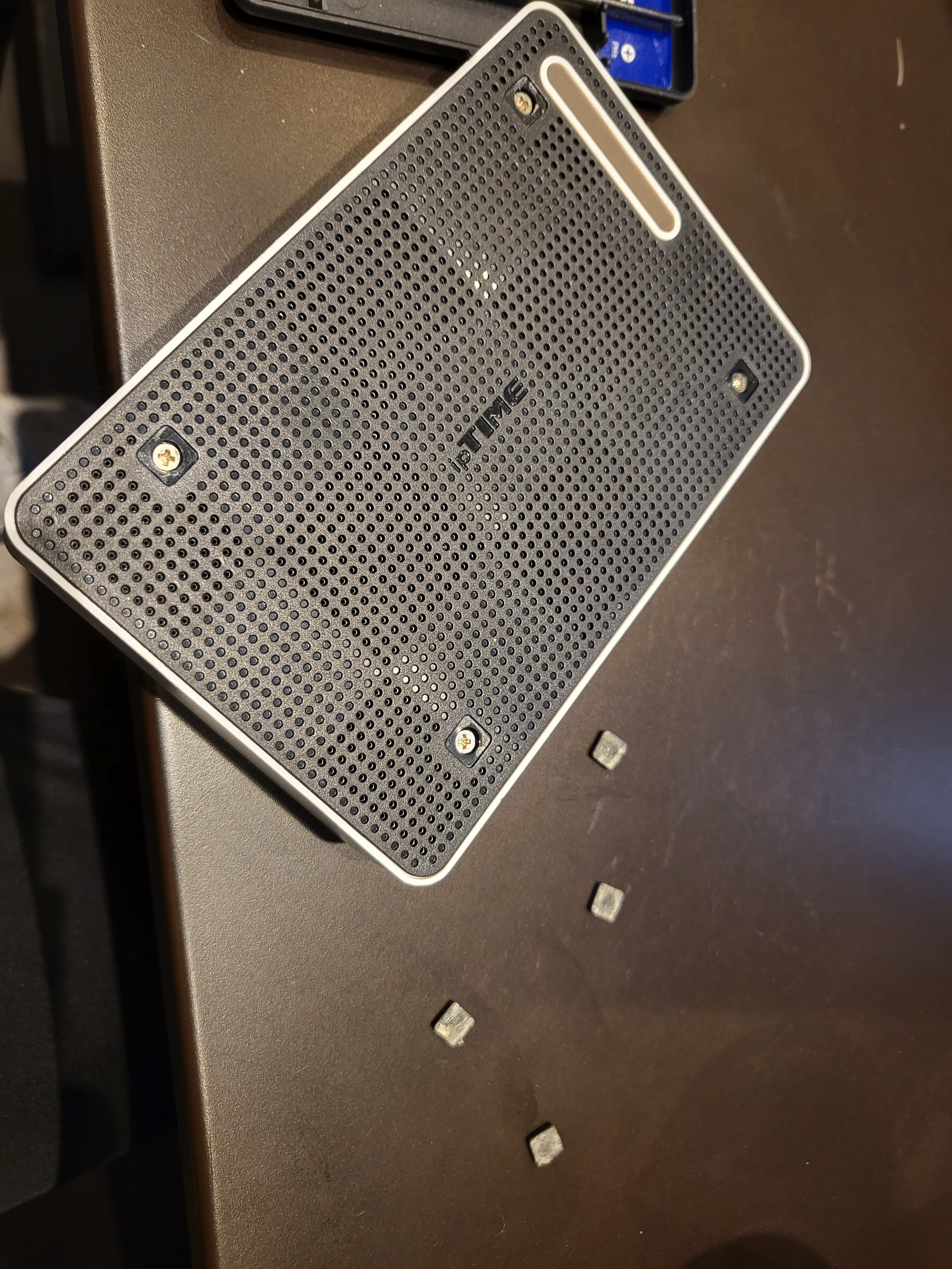 나사가 보이지 않습니다 이럴 경우 대체로 고무발 아래에 나사가 있는경우가 많습니다. 고무발 제거후 나사를 풀어줍시다.