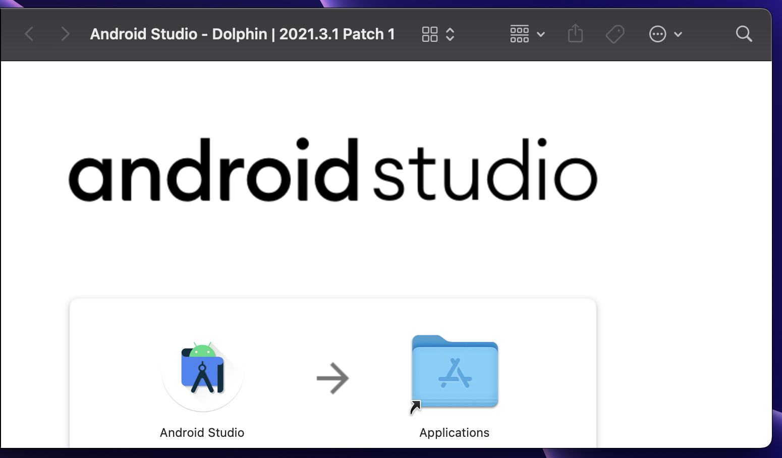 다운 받은 패키지를 열어서 안드로이드 스튜디오 파일을 애플리케이션 폴더로 옮겨주면 설치는 끝납니다.